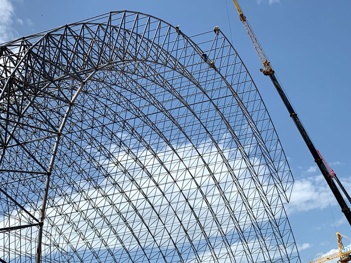 (2)网架加工前应对现场尺寸进行复测,确认无误后方可进行加工、安装;网架制作、运输、安装应遵守《空间网格结构技术规程》JGJ7-2010、《钢网架兴平螺栓球节点》JG/T 10-2009、《钢网架兴平螺栓球节点用高强度螺栓》 GB/T 16939-2016、《兴平钢结构兴平工程兴平施工规范》 GB50755-2012、《兴平钢结构兴平工程施工质量验收标准》 GB50205-2020。